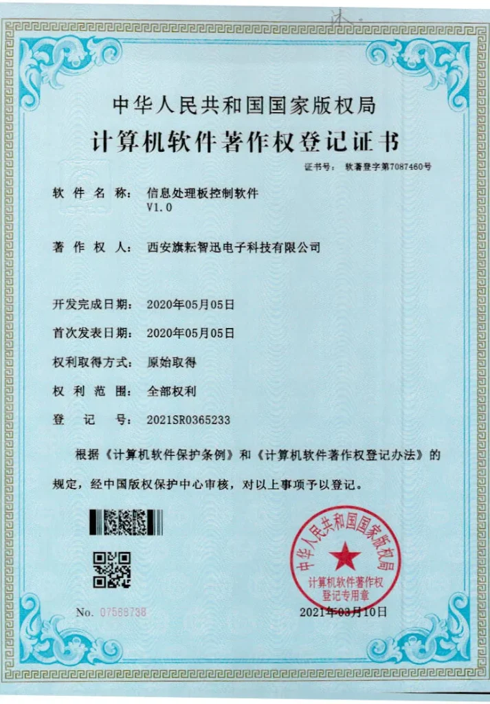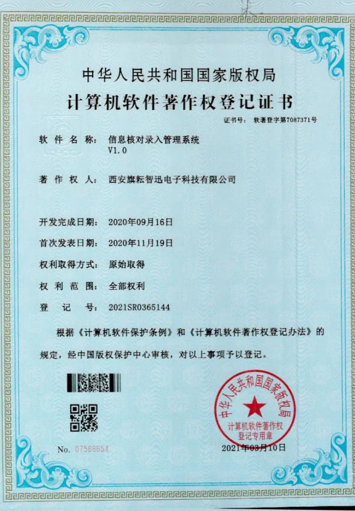 Сертифицированная как высокотехнологичное предприятие города Сиань, компания Циюнь Чжисюнь благодаря выдающимся инновационным способностям и стандартизированному корпоративному управлению получила ряд отраслевых сертификатов и наград, включая, но не ограничиваясь: сертификат системы менеджмента качества ISO9001, статус национальной научно-технической малой и средней компании, множество свидетельств о регистрации программного обеспечения и патентов. Эти достижения не только являются полным признанием технологического потенциала и рыночных результатов компании, но и служат надежной гарантией ее устойчивого развития.