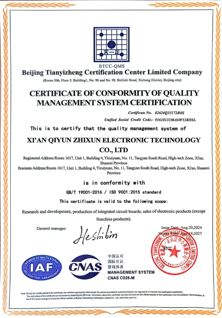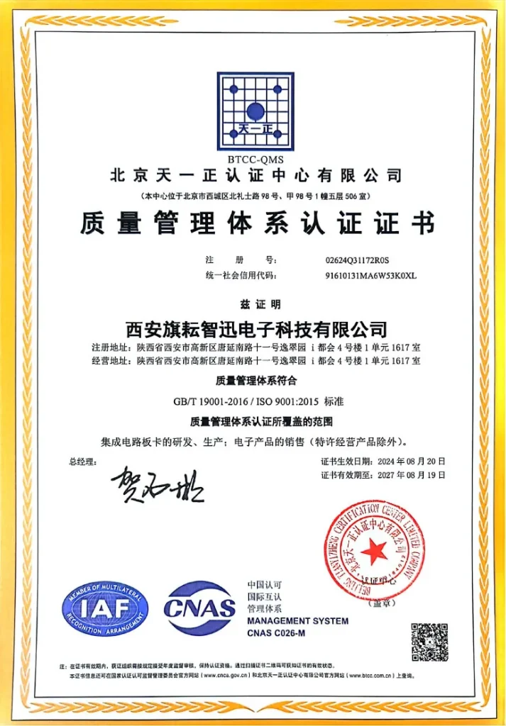 ООО Сиань Циюнь Чжисюнь Электронные Технологии движется вперед за счет технологических инноваций, ориентируясь на потребности клиентов и придерживаясь стратегии развития «параллельное развитие собственного производства и внешнего обслуживания». Мы стремимся стать надежным партнером в области электронных схем: будь то самостоятельная разработка передовых продуктов или профессиональные услуги ODM/OEM, мы будем опираться на превосходные технические возможности, надежное качество продукции и комплексную систему обслуживания, чтобы создавать ключевую ценность для широкого круга клиентов в оборонной, промышленной и гражданской сферах, совместно способствуя инновационному развитию в эпоху интеллектуальных технологий.